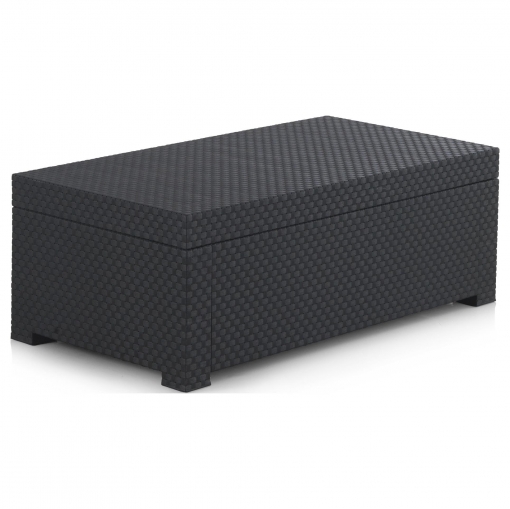 - Baúl Diva Cuscion Wengué: en todo jardín hace falta un espacio donde almacenar cosas. Una buena opción es instalar en un rincón un baúl como éste, que mide 117 centímetros de largo, 63 de ancho y 43 de alto. Al estar fabricado en resina, se puede limpiar fácilmente.