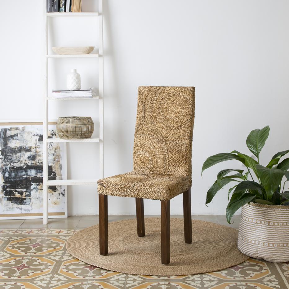 - Round silla ábaca: esta silla de manufactura artesana tiene un diseño moderno hecho con fibra de ábaca, trenzada e insertada en espirales. Está disponible tanto en acabado natural como blanco envejecido.