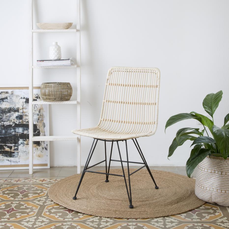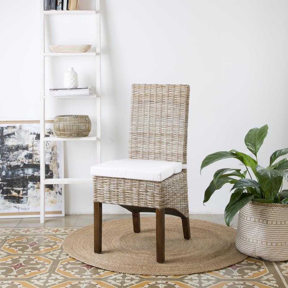 - Koboo silla de ratán natural: para los amantes de las fibras naturales Koboo es la opción perfecta. Es elegante y, gracias a su cojín y alto respaldo, también es cómoda.