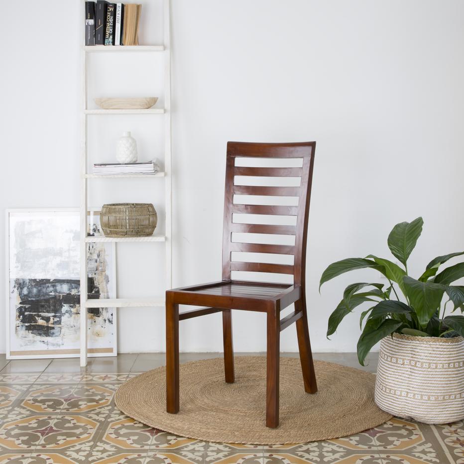 - Silla Pad: elaborada con madera de teca, es ideal para comedores clásicos de líneas sencillas. Su respaldo curvado le aporta confort y, al estar fabricada en madera, aporta calidez al ambiente