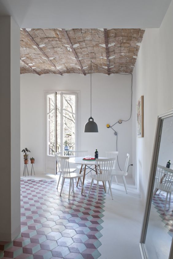 Aunque los lugares favoritos para usar las baldosas hidráulicas son la cocina y el baño, no son zonas exclusivas y cualquier estancia del hogar puede encontrar su hueco para usar esta tendencia. A diferencia de las anteriores, en este caso es mucho más común verlo en los suelos, y no tanto en las paredes.