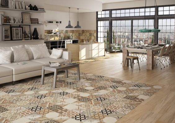 En cualquier caso, es muy común combinar las baldosas hidráulicas con otros tipos de suelo, ya que encajan a la perfección y funcionan muy bien para separar espacios o decorar estancias grandes. Si siempre has querido una alfombra para dar color pero odias limpiar sus telas cada semana, esta es la mejor opción para tu hogar.
