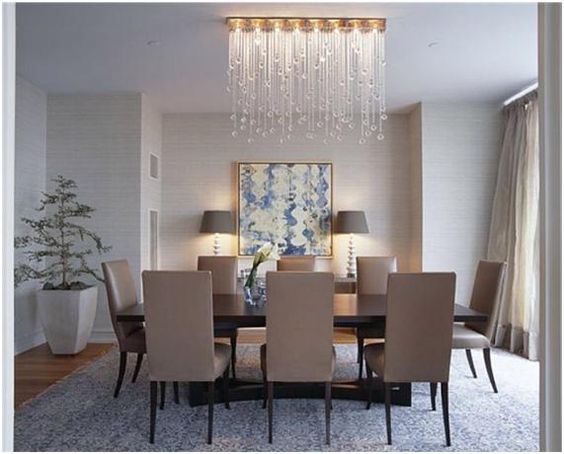 En determinadas ocasiones, querremos crear un diseño elegante y formal, sobre todo si solemos ofrecer cenas de empresa o de negocios en casa. En este caso, mesas amplias de maderas oscuras o de cristal, con sillas tapizadas en tela con tonos claros (beige o blanco roto) suelen ser la decisión más común (y siempre acertada).